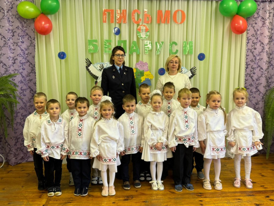 «Письмо о Беларуси» – патриотическое мероприятие под таким названием прошло в нашем учреждении образования, и его участниками стали воспитанники старшей группы. Почетными гостями были помощник прокурора Зельвенского района Песняк Инна Олеговна, главный специалист сектора социальной и организационно-педагогической работы отдела образования райисполкома Мацкевич Татьяна Николаевна.